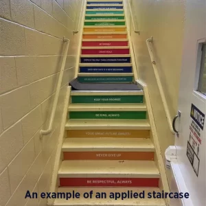It is especially used on the stairs of primary and secondary schools. It is a material that can be used in motivation of students. It creates an environment where students can repeat while playing in the school. It also adds a visual beauty to the school.Sizes of elements in stair decals: ● 1 strip :…